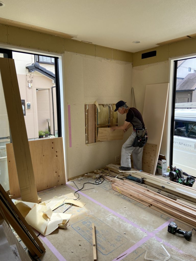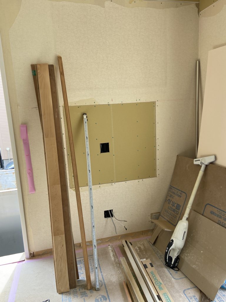 この写真のように部分的に石膏ボードを切り取り、施工します。