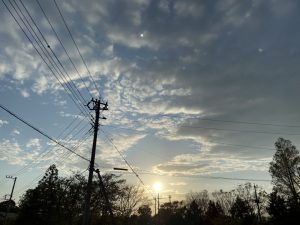 写真は、在宅勤務中の我が家から見えた夕日です。