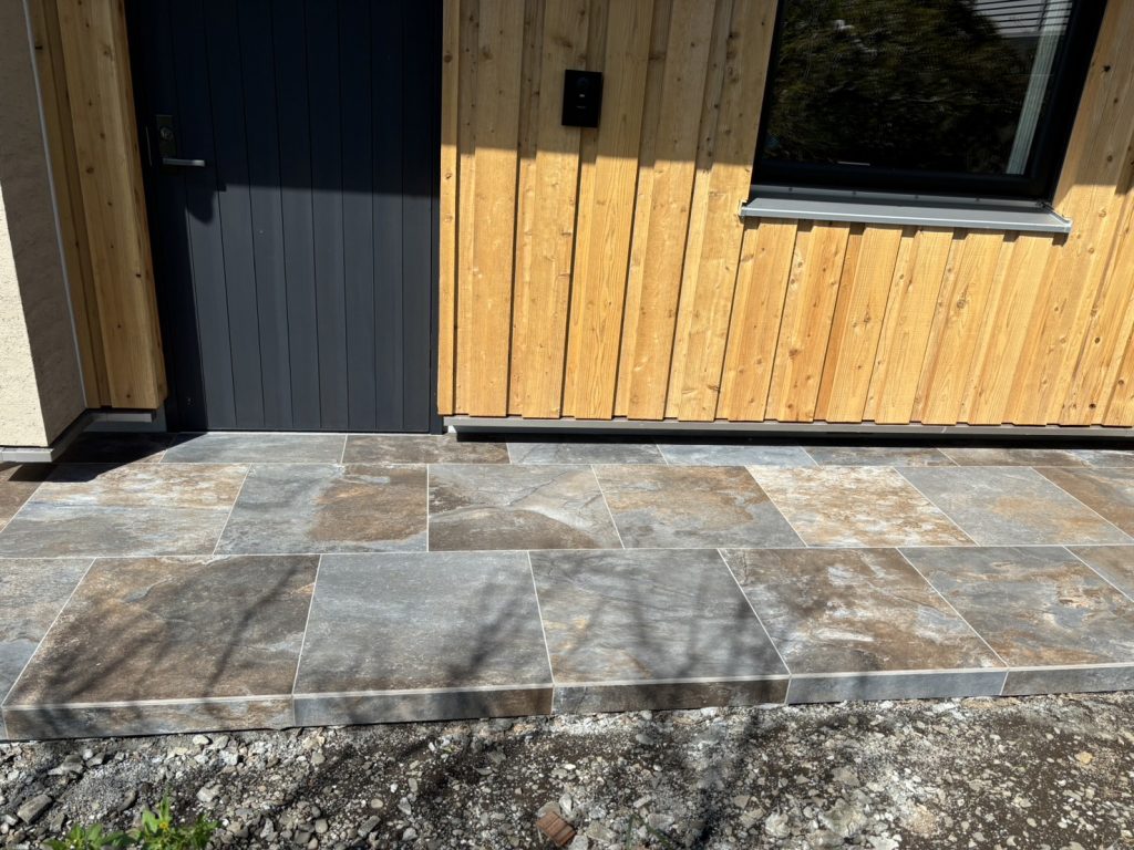 今回は標準の洗い出しではなく、タイル仕様の玄関。