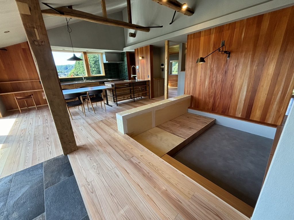 そして、こちらは施工中の画像ですが、ピットリビングがあります。これは是非見ていただきたい!