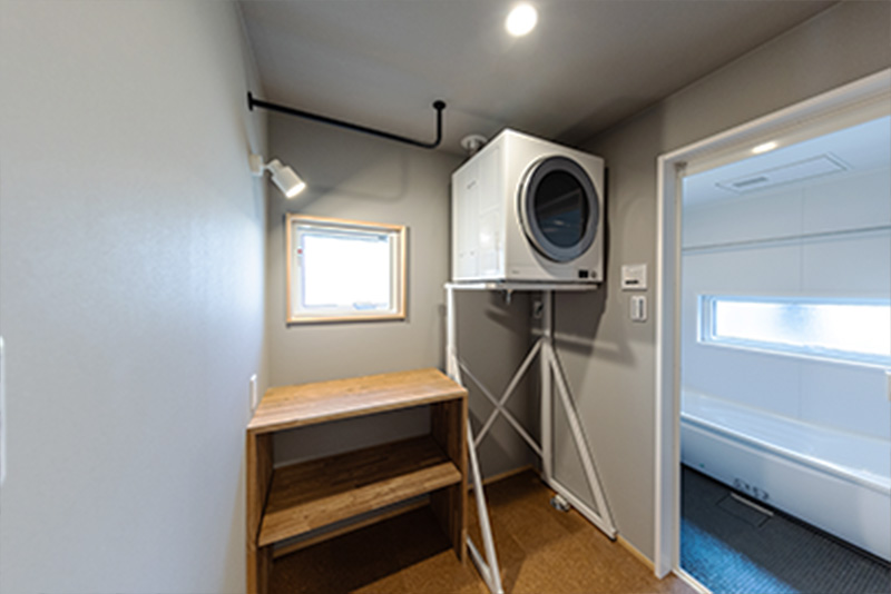 昔のお家は、脱衣所に洗面所があることが多く、トイレを使った後はトイレタンクについている水道で手を洗うことが一般的でした。洗面所をトイレ脇に配置変更することで、お客様も快適に手を洗うことができるように。玄関を入ってすぐの位置は、帰宅直後に手洗いができるので風邪の季節や泥んこ遊びの後も安心。