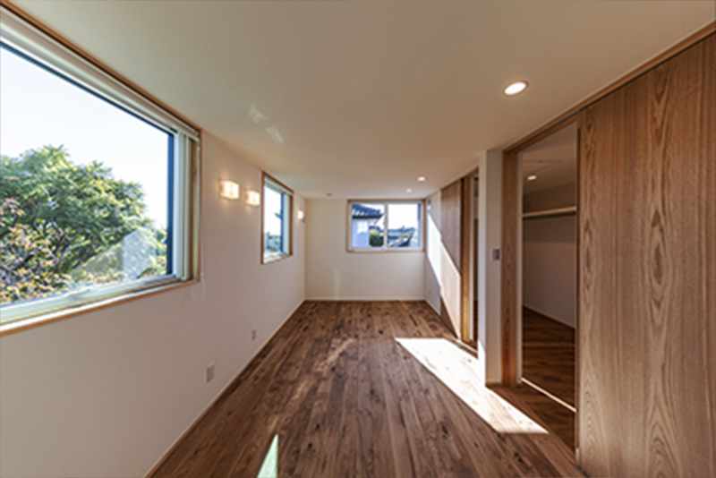 東側には広々とした9畳の居室。ドアが2つあるため、真ん中に間仕切り壁を設置すれば2部屋に間取り変更が可能。ご夫婦でも、子供部屋としても、また趣味部屋の増設にも、使い方はアイデア次第。