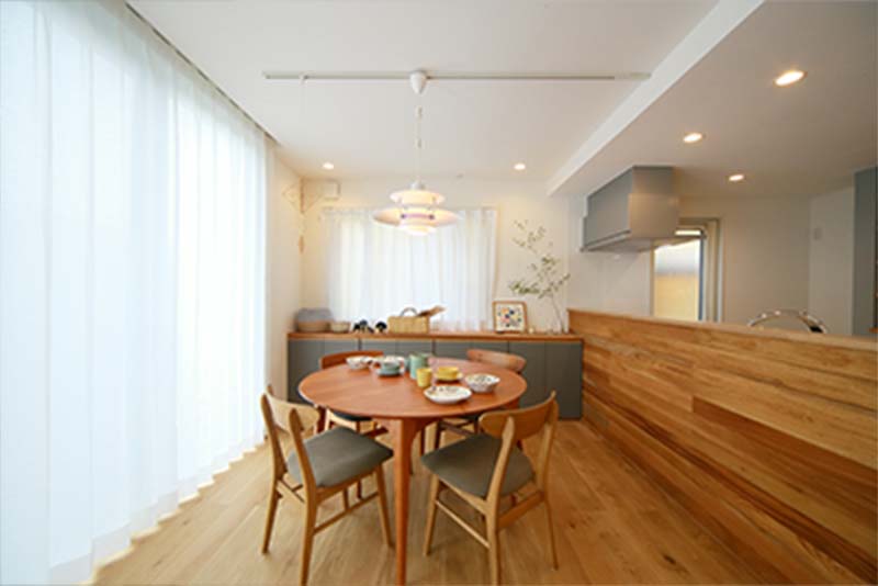 もとの建物は築45年の建物で、耐震性能や断熱性能はとても低いものでした。今回のリノベーションで、耐震性能は約4倍(上部構造評点0.35→1.68)断熱性能も約4倍(外皮平均熱貫流率UA値1.81→0.44)を実現し、安心・快適に生活できる空間にしています。