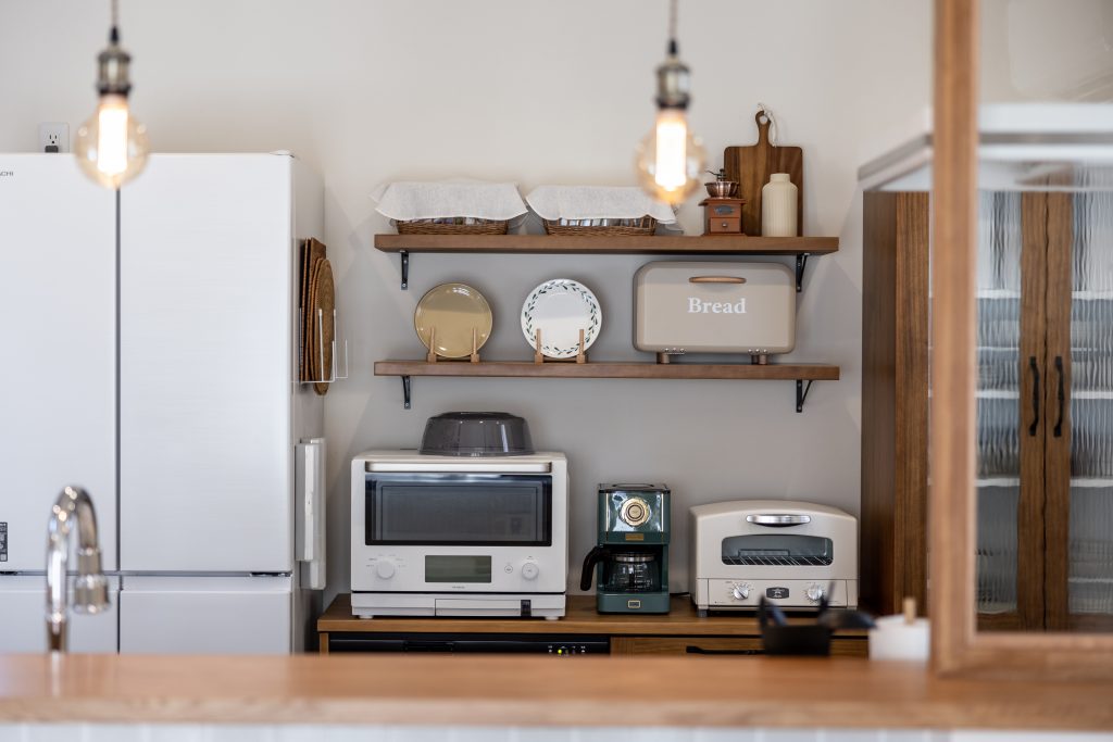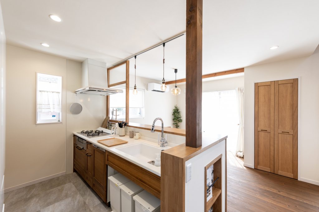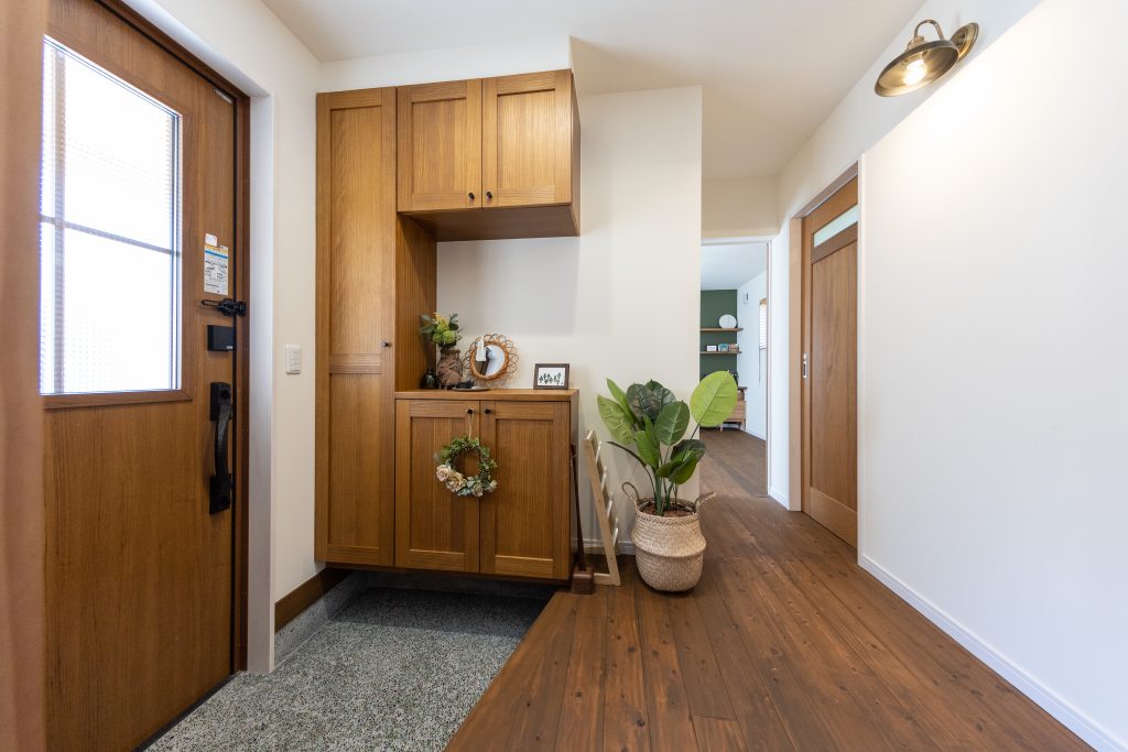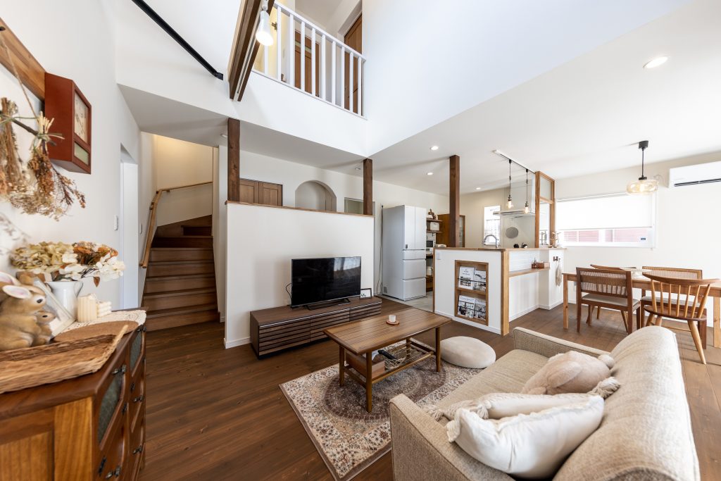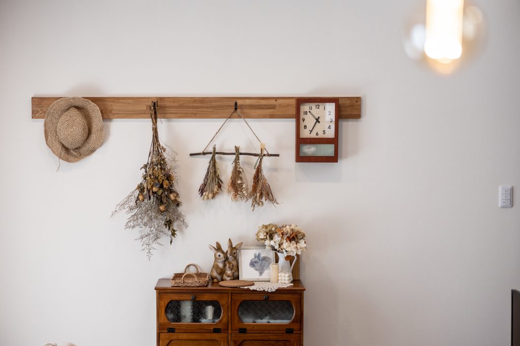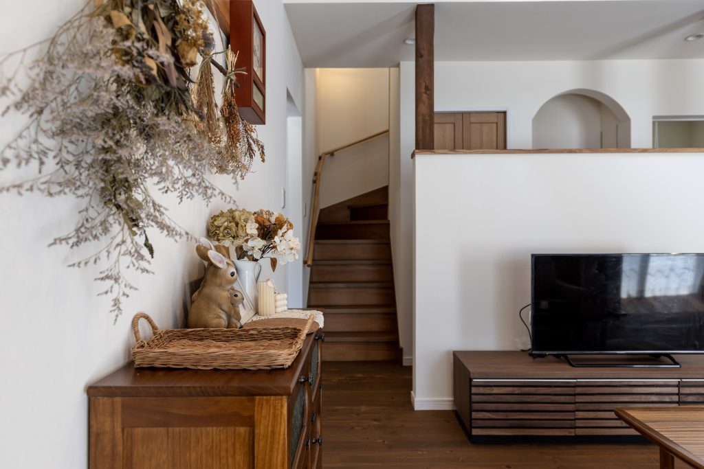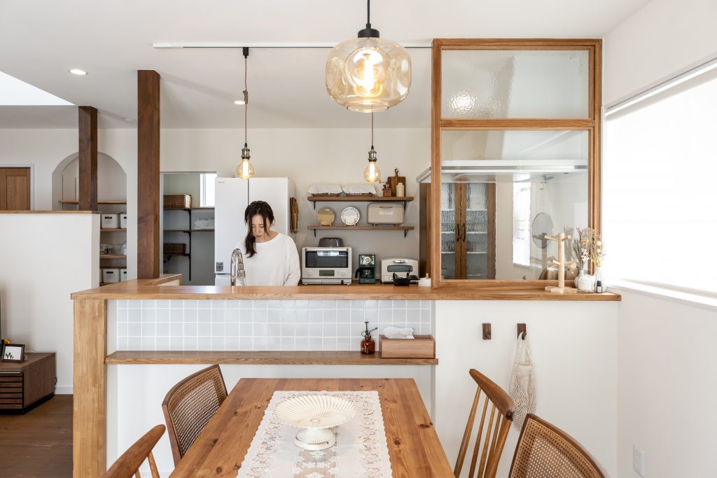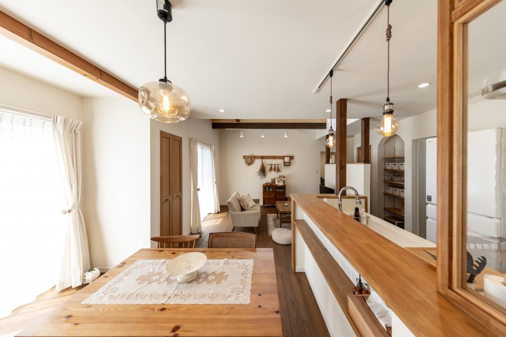 アンティークやヴィンテージ、レトロなものが大好きな奥様。時を重ねた家だけが持つ「味」を求めて、あえて新築ではなくリノベーションを選んだそう。工事では、既存の柱の風合いを活かしたり、木材の塗装時も少し古びて見えるような色味を選んだりと、味わい深い空間になるような仕上げにこだわりました。インテリアにもユーズドのカリモクなどどこか懐かしいアイテムを取り入れています。