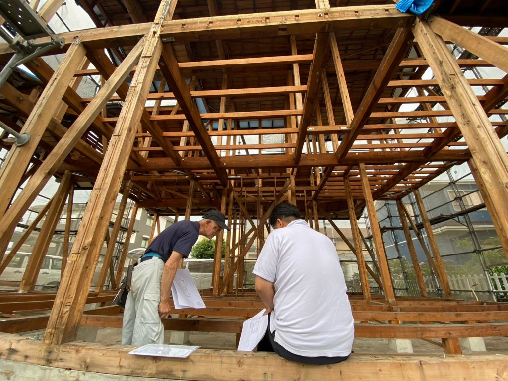 2023.06.19 解体作業終了。実際の現場を確認しながら、大工さんと材料の数量や工程の打ち合わせ。