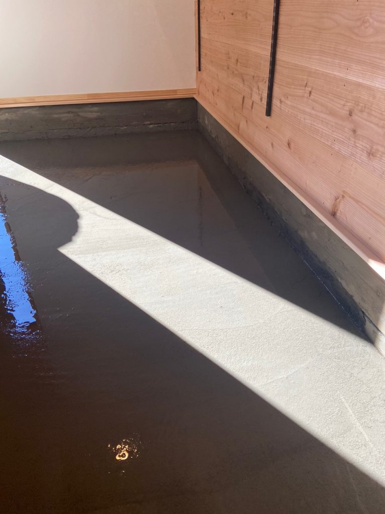 今日は左官職人さんが、玄関の土間工事中でした! 鉄筋を入れて、強い土間にします! エコフィールドの標準仕様の仕上げ方は、「洗い出し仕上げ」 この仕上げ方は、ベテランの職人さんも泣かせる難しい施工だそうです!! こちらからすると素敵ですが、職人さんの苦労の賜物なのですね☆