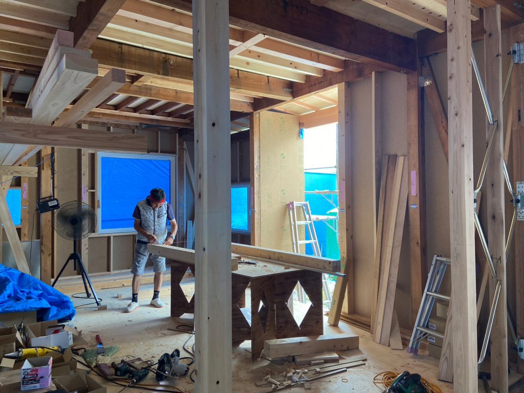 2023.07.7 大工木工事スタート!! リノベは大工さんの手仕事多数!!寸法取りから、木材の加工を細かくおこないます。