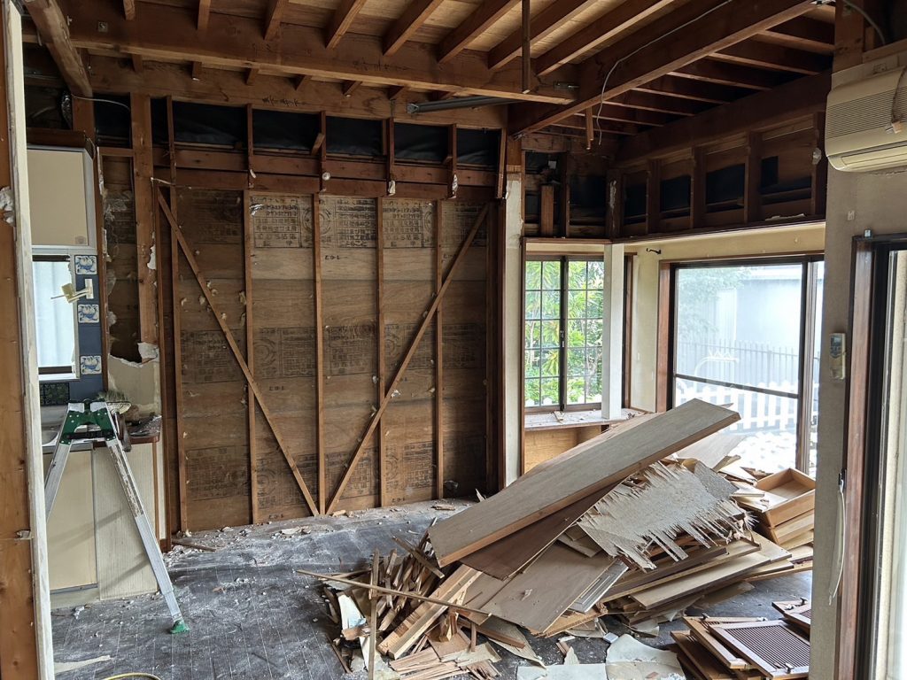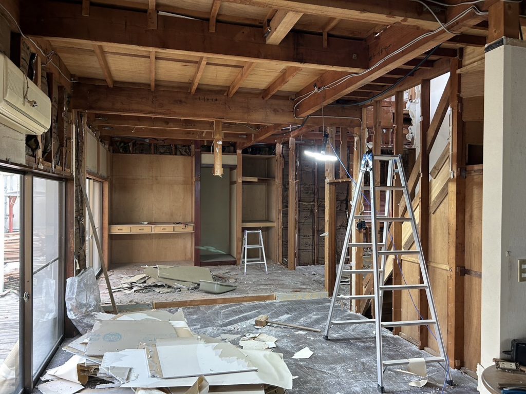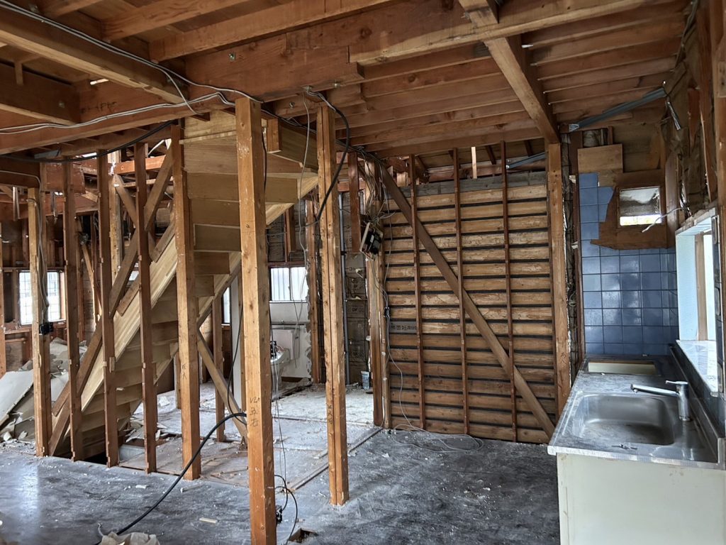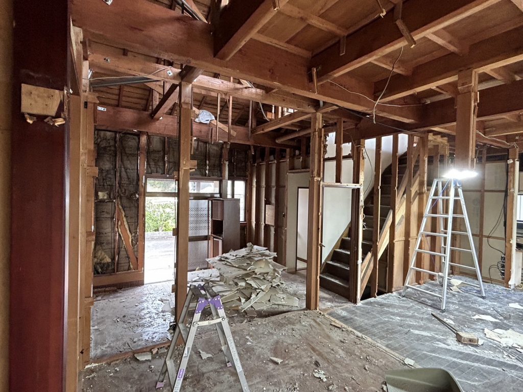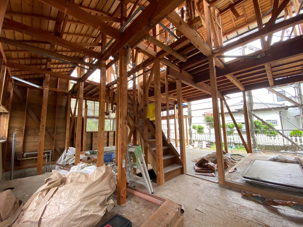 解体作業が終了しました!! リノベーションの難しいところ。 実際に解体が進んでからではないと、建物の全貌や、完成日程がなかなか定まらないリノベーション。 既存のものがどこまで利用できる状態なのか?解体して、内部が見えてこないとなかなか決められません。