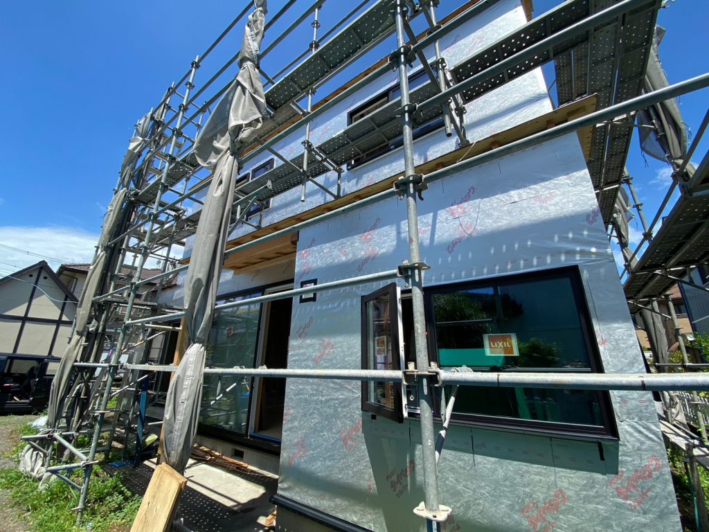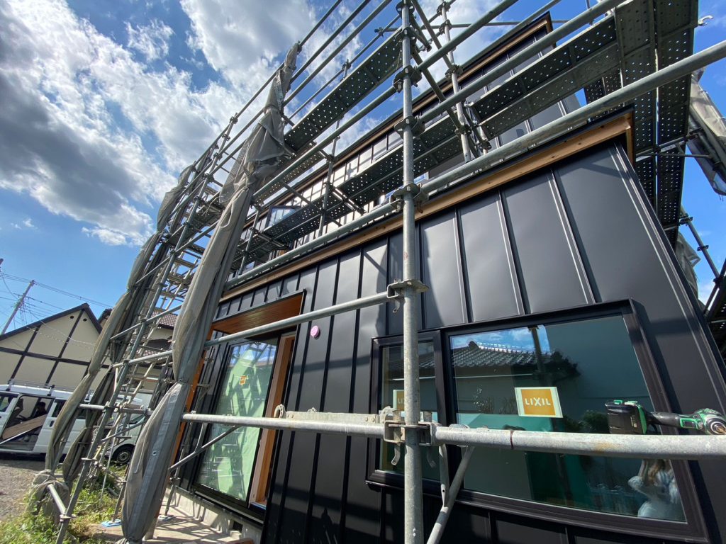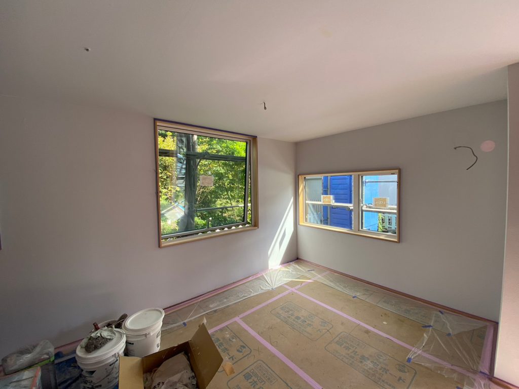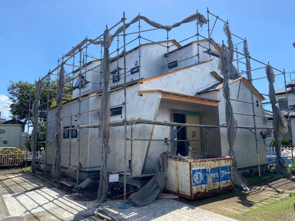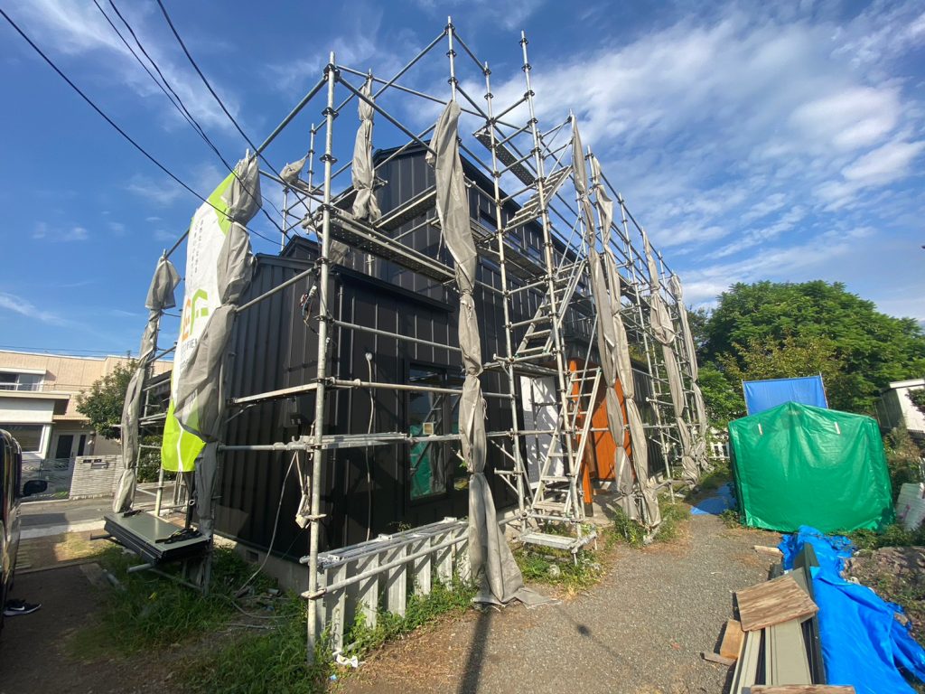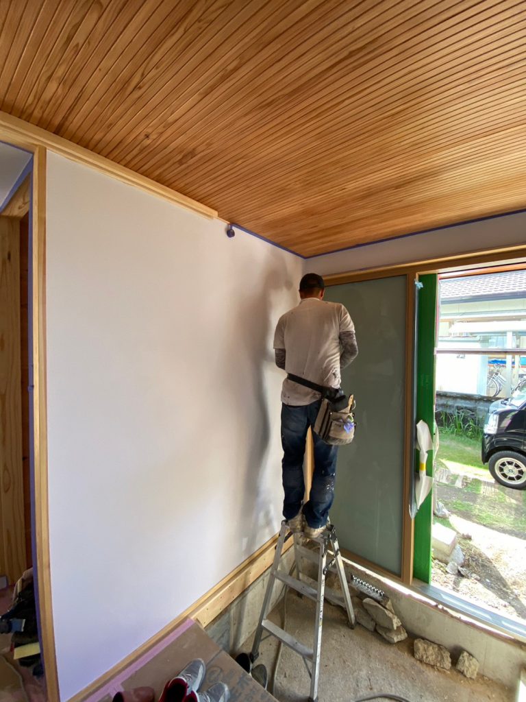 2023.10.02 今日は内側の工事がない日。これから取り付ける設備もまだありますが、いったん工事が落ち着きました☆今日は外壁の仕上げ施工を行っていました!