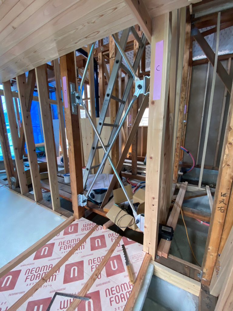 その分、職人さんの繊細な手仕事が必要になったり、高度な技術や知識が不可欠です。 今日も、既存の根太の張り方や、耐力壁の位置などを細かく現場で確認し、手配する材料の量や種類を打ち合わせしました。 無駄が出ないように、利用できるものはそのまま使用し、お客様の費用の負担をなるべく減らす努力は惜しみません!!