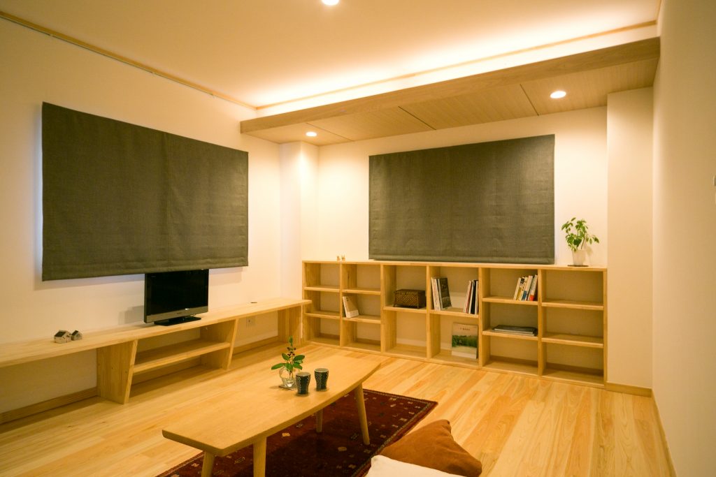 シンプルな間取りに作り付けの棚を多く設け、使い方の自由度を高めました。