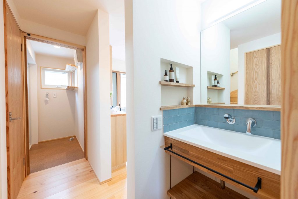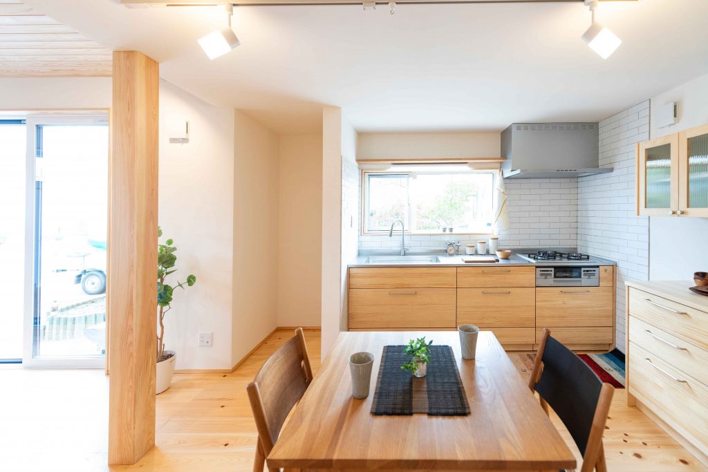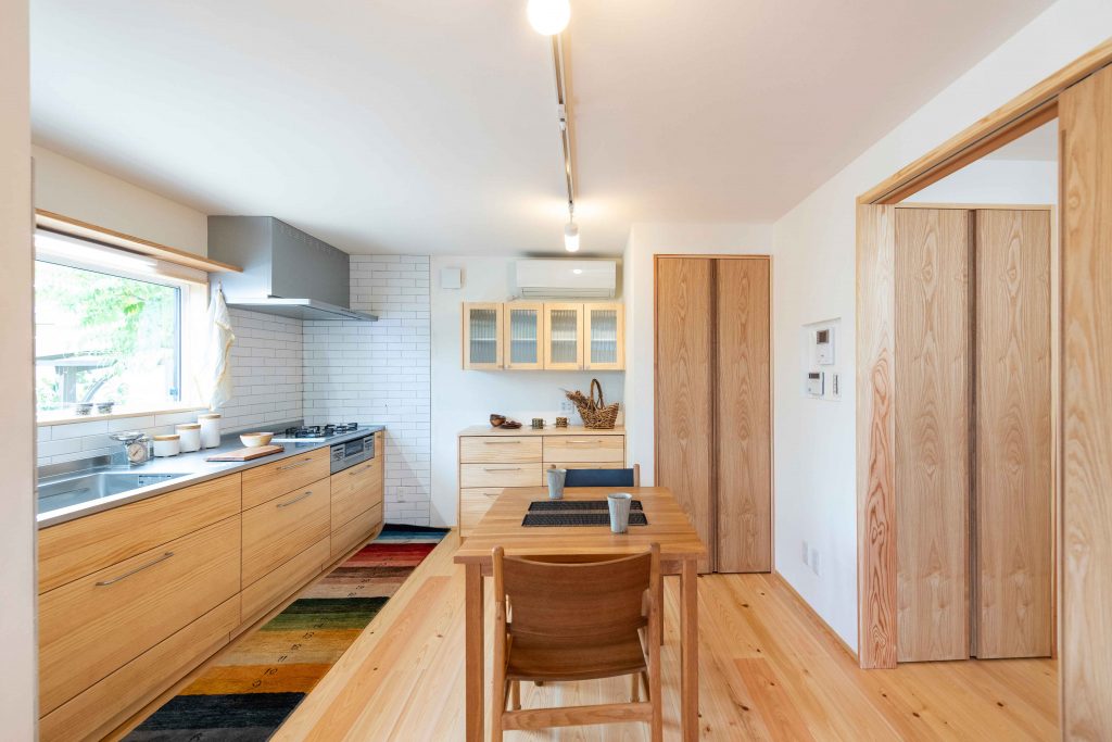 ※内装の無垢材・自然素材との相性抜群な、木で作られたキッチンを採用。