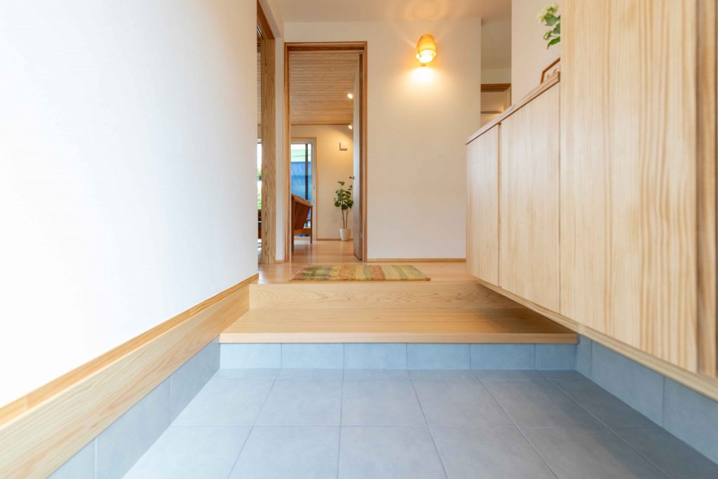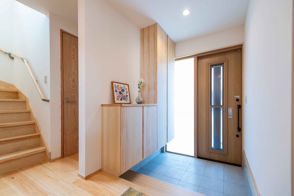 ●暗かった玄関も、片側が擦りガラスの引き戸を採用し、明るい玄関に。