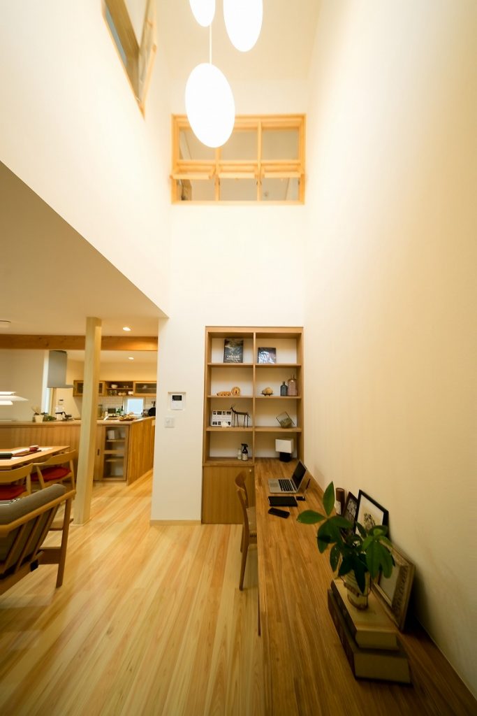 吹き抜けを作ったことで、明るさと広がりを同時に確保することができました。