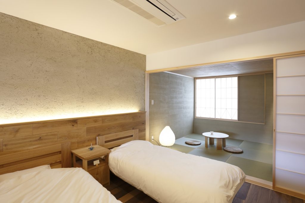 和室は薩摩中霧島壁を使用し、天井には葦べニア仕上げ、床柱には辛夷を使い、畳はヘリなしの畳を用いてモダンな雰囲気に仕上げました。