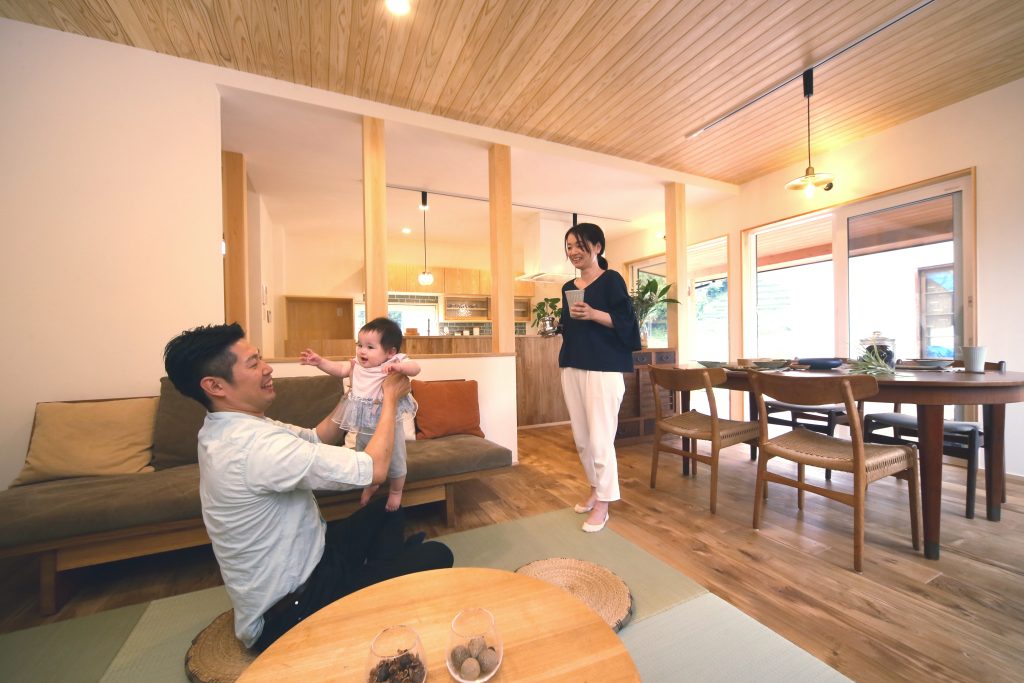 当初の夢だった新築を事情により断念し、フルリノベーションを選択したIさんご夫婦。「家ができるまでは不安もありましたが、今となっては、最良の選択ができたと思っています。 新築可能な別の土地を探すという選択肢もありましたが、子どもの通園通学などを考えた時、何も面識のない土地に住むのには抵抗がありました。それに、いずれは祖母や母が一緒に住むことも想定しているので、馴染みのある土地でそのまま暮らすほうがいいだろう、って」と、ご主人。さらに奥様も「この家に来て、本当にリノベーションなの?と驚く友人が多いんです。エコフィールドさんの優れた設計、建築の技術力があるからこそできたものだと思うので、リノベーションに興味があるならエコフィールドさんに相談するといいよ…と勧めています(笑)」